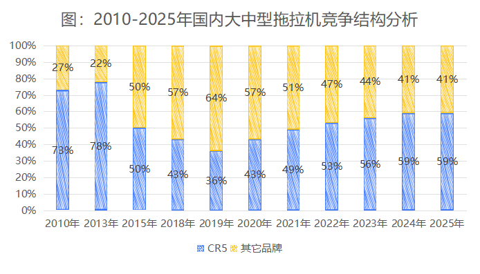 近年来,我国农机市场已形成明显的梯队化格局,头部企业行业集中度持续提高。市场呈现出少数几家具备全国性销售网络的头部企业,与众多深耕一个或多个省市级区域市场的腰尾部企业并存的局面。